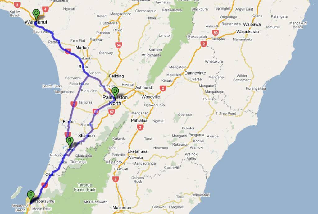 We had decided to go up the coast to Levin (one motorcycle shop), over to Wanganui (two motorcycle shops) and then back home via Palmerston North (four motorcycle shops).