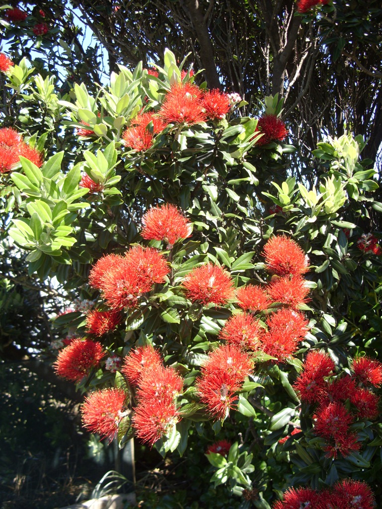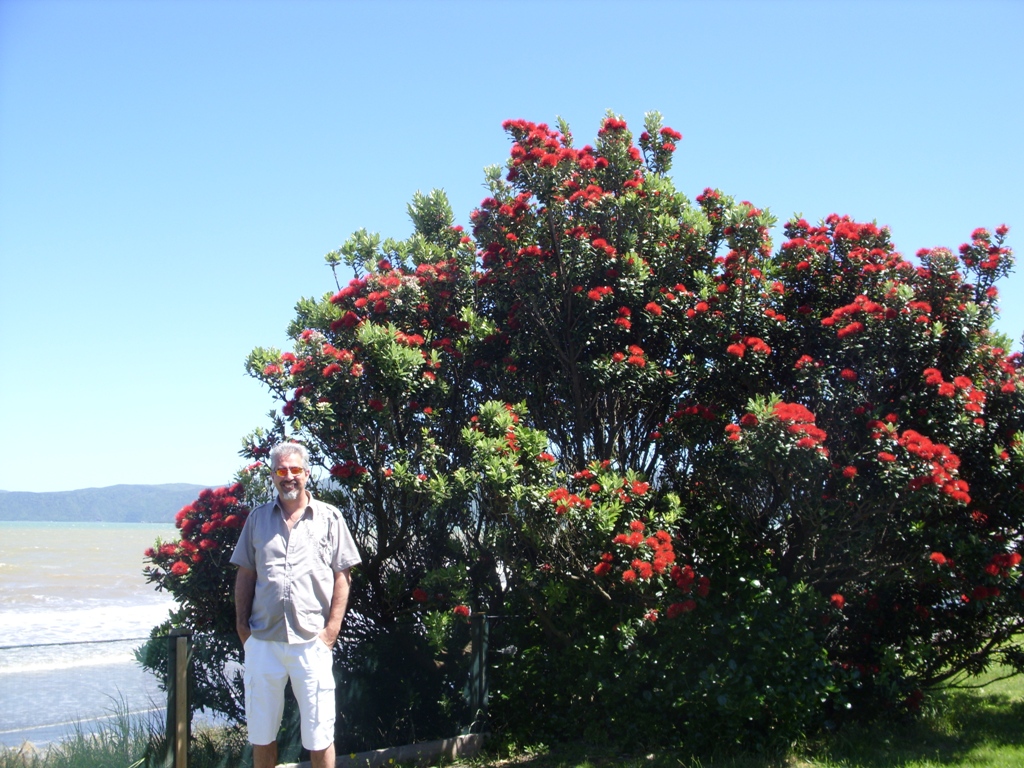 We stopped off on the way through Paraparam to take some pictures of the New Zealand Christmas tree (pohutukawa) to show you. They look gorgeous at this time of year: