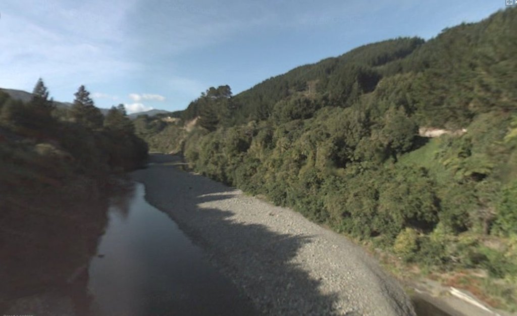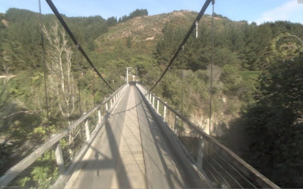 The first picture below is from Google, and you can just about see the gravel track winding away into the distance above the river on the right hand side of the river. The picture is taken from the suspension bridge across the river, which we went over after turning back from the gravel track.